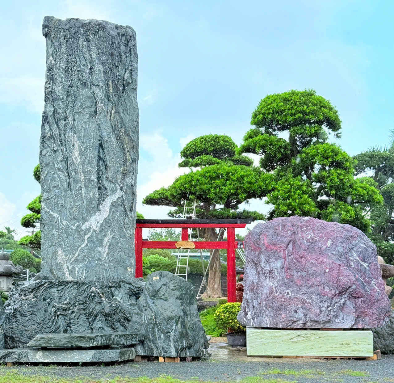 Bên cạnh đá xanh, Torri Garden còn cung cấp đá đỏ Nhật Bản – loại đá quý hiếm với tông đỏ hồng tự nhiên, tạo nên điểm nhấn độc bản cho sân vườn và công trình.
